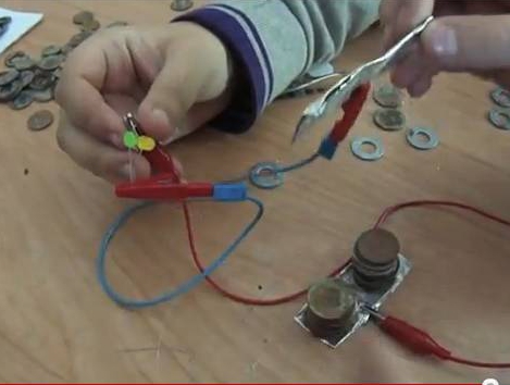 Fem una bateria amb monedes de coure, volanderes galvanitzades i paper mullat en vinagre.