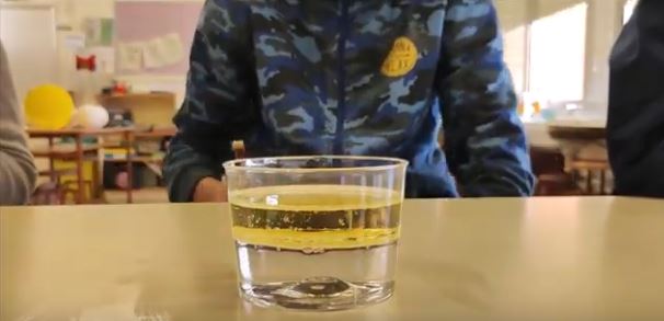 - Posar oli en un dels gots amb aigua.