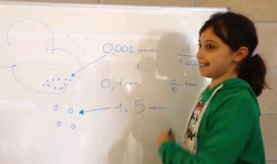 Al vídeo es veu com els alumnes de l’Escola Els Estanys expliquen què són els núvols: un conjunt de gotes i de cristalls de gel de mida molt petita, d’un diàmetre situat entre 0,001 i 0,1 mil·límetres.