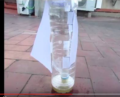 Per fer aquest senzill experiment cal omplir una ampolla d’aigua amb tres dits de vinagre. Després s’ha de disposar una quantitat de bicarbonat en un tovalló formant un petit paquet que es deixarà penjant amb un cordill. A continuació, es tapa l’ampolla amb el tap de suro i se li dona la volta. El bicarbonat reacciona amb el vinagre i l’ampolla es va omplint d’aire fins que ja no n’hi cap més. La força d’aquest fa que el tap de suro surti tot seguit. Aquesta força, que exerceix contra el terra, és retornada, fent que el coet s’enlairi.