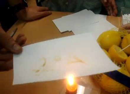 - Quan es vulgui saber el missatge, s’apropa a l’espelma encesa movent el paper de manera perpendicular a l’espelma per tal que no es cremi.