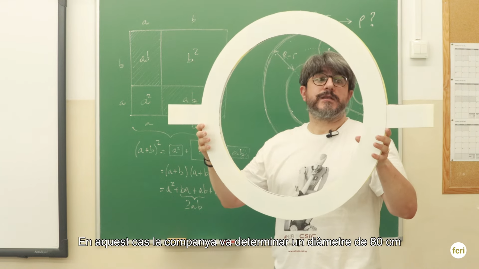 Repte: donada una corona circular plana amb dos radis de mesura coneguda, la del cercle interior i la del cercle exterior, si volguéssim situar 26 cercles homogèniament distribuïts dins de la corona circular: quin podria ser el seu radi màxim sense que se solapessin els uns als altres?