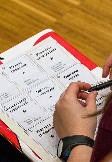 Estructura: 1) Formació sobre la temàtica; 2) Formació en conducció de debats; 3) Debats als centres; 4) Congrés al CosmoCaixa per debatre i posar en comú les conclusions.