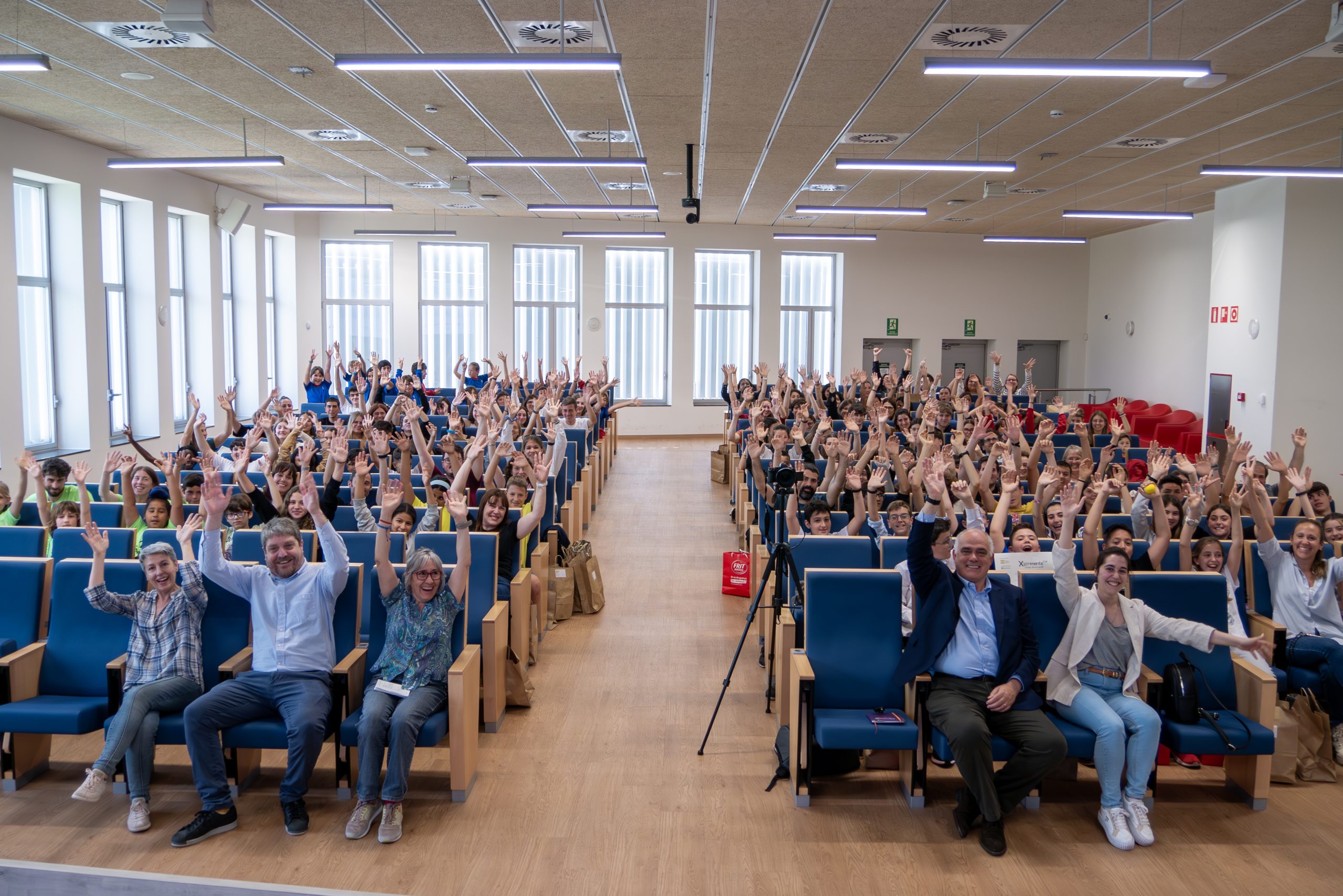 Més de 160 alumnes i docents finalistes van omplir l’auditori de l’Escola d’Enginyeria de Barcelona Est (UPC) per assistir a l’acte en el qual es va obsequiar als vídeos finalistes i es va revelar els vídeos que havien resultat guanyadors per a cada categoria (primària, secundària i batxillerat i cicles formatius) així com els que havien aconseguit una menció del jurat.
