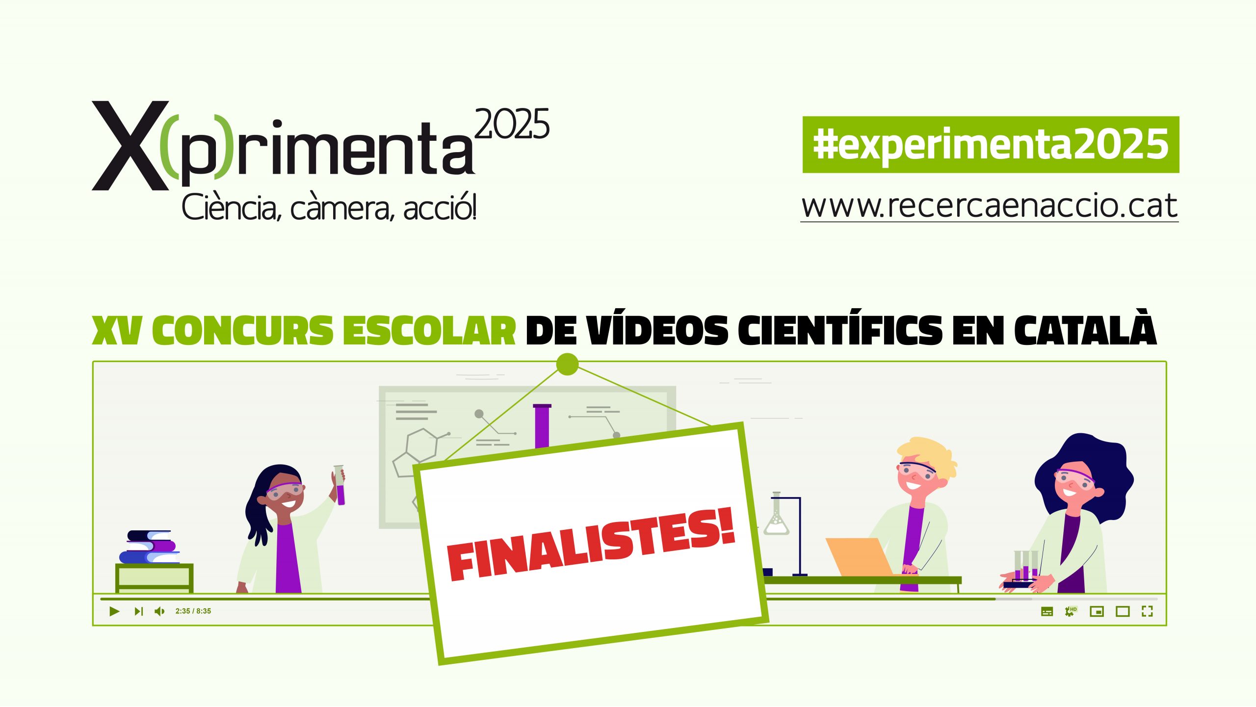 X(p)rimenta 2025 bat tots els rècords! Enguany s’hi han presentat 308 vídeos, gairebé un 44% més que en l’edició anterior. En total, hi han participat 1.078 alumnes i 114 docents de 109 centres educatius. Dels 308 vídeos, 91 corresponen a la categoria de primària; 123, a la de secundària; i 94, a la de batxillerat i cicles formatius. D’aquests treballs, el jurat ha seleccionat 33 vídeos finalistes.