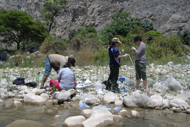 Anem per feina i agafem tots els materials i baixem al riu a fer la feina de sempre. Cada cop que sortim ve una persona nova, així que els primers punts li anem explicant com es fan servir els aparells, com s’omplen les ampolles, etc. fins que ja sap com funciona tot i tenim un integrant més a l’equip. Com no hem de caminar gaire estem avançant molt. Fa un dia ben bo així que està anant tot molt bé i ràpid. Avui hem de fer sis punts, és migdia i ja en portem tres! Aquí és costum dinar a la una, però decidim que millor acabar la feina, dinar i tornar cap a casa que el viatge és molt llarg. L’últim punt costa una mica més de fer perquè ja estem cansats, però a les cinc estem dinant amb totes les mostres a la nevera!