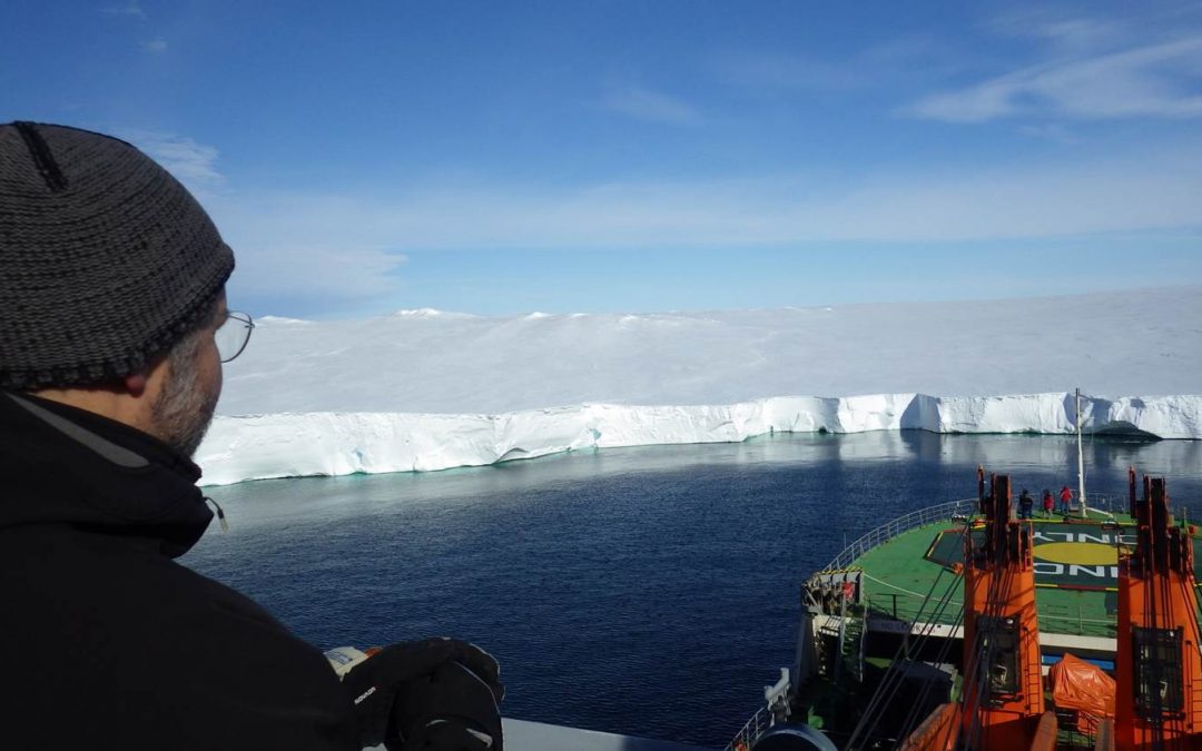 Imatge: la glacera de Mertz al sol, ben retallada de blau Ho teníem tot planificat per fer una segona immersió del ROPOS tocant a la glacera Mertz, quan al pont de comandament van observar, amb el radar, que, per un canvi de direcció del vent, el gel marí havia entrat...