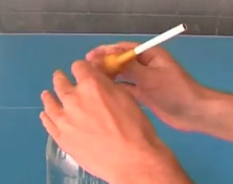 Aquest és un experiment força original i senzill que pot foragitar potencials fumadors, per analitzar els tòxics del tabac. El muntatge consisteix a “fer fumar una cigarreta” a una ampolla de plàstic a través d’un cotó on queda recollit el residu del fum que passa al...