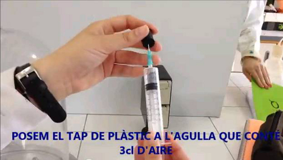Aquest experiment es basa en la Llei de Boyle-Mariotte. L’objectiu és experimentar la variació del volum i de la pressió a temperatura constant. Per fer-ho, hem necessitat: Una campana a pressió elèctrica Una xeringa Un tub de plàstic Menció X(p)rimenta 2013 en la...