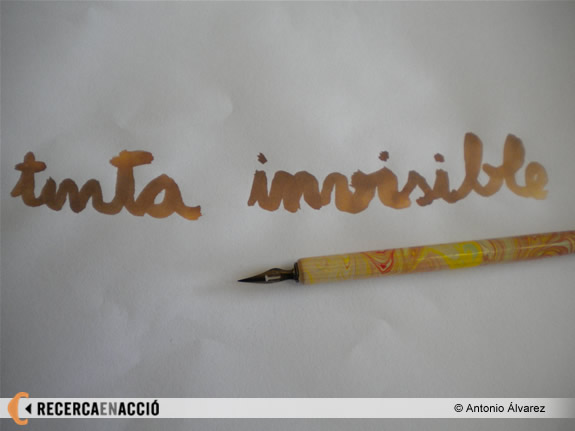 Si vols fabricar tu també tinta invisible i vols conèixer els detalls del nostre experiment, llegeix el text Tinta invisible que ens ha preparat en Josep Duran. Si tens curiositat per saber com era la fòrmula original de 1766, pots llegir l’article la Tinta invisible, una formula de 1766, preparat per Xavier Renedo.