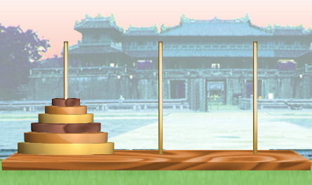 Consisteix en una base amb tres varilles on insertar els 5 discs. S’han de moure les peces, d’una en una i d’un pal a un altre, fins a tenir-les totes en l’últim pal.